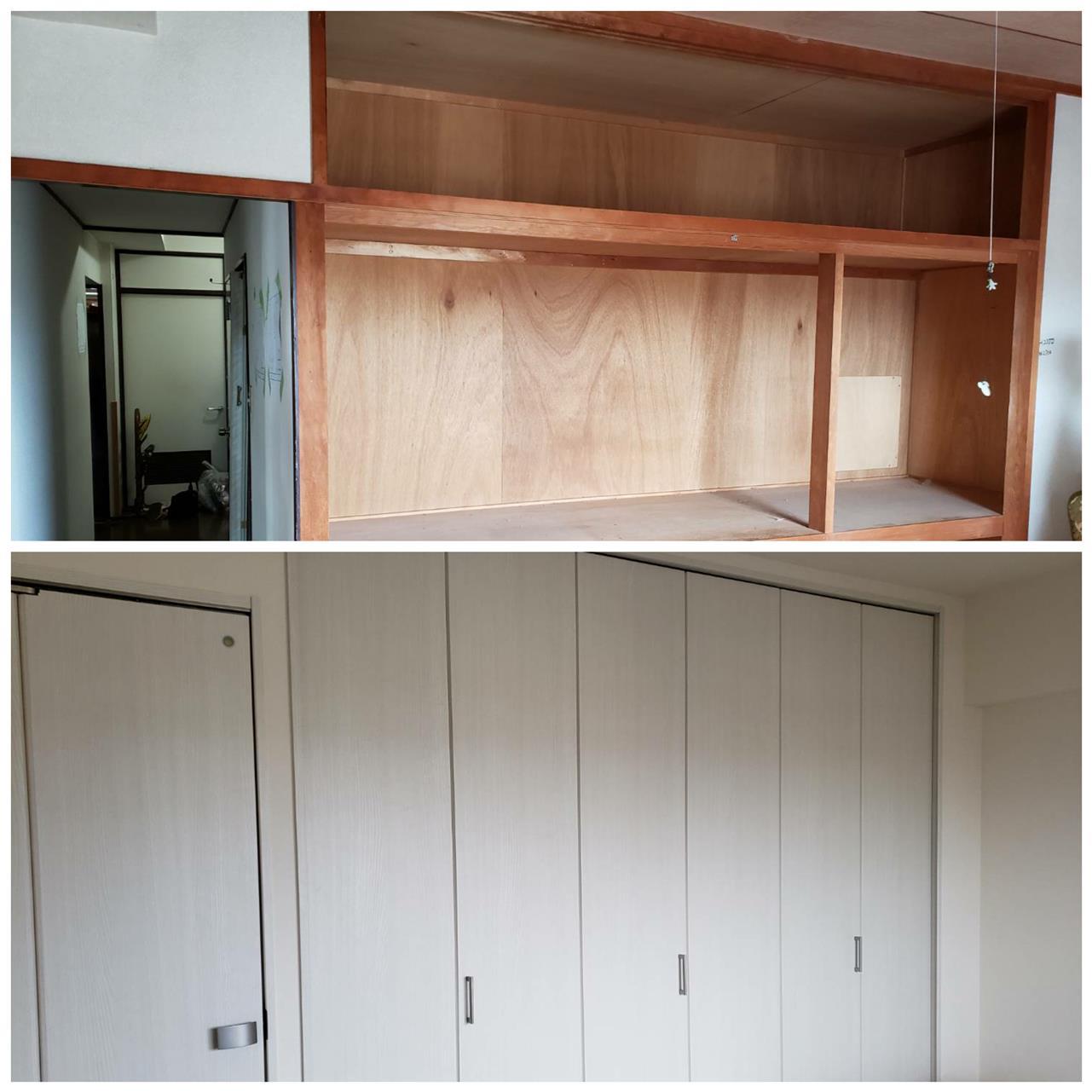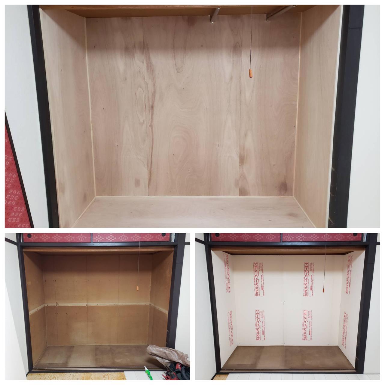 それと押し入れの壁が結露していてましたので断熱材を入れて綺麗にベニヤ板を張りました。